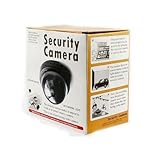 Now you can deter robbery, theft, and vandalism without the high cost of a real outdoor security camera. When placed outside your home or business, even the most sophisticated criminals will think the premises is guarded by a high-tech surveillance system and go in search of an easier target. Also recommended for security in parking lots. This is an actual surveillance camera in outdoor housing that has been modified into a "dummy" or fake security camera. This dome dummy camera is designed to imitate the small, high tech security cameras on the market today. Installs quickly and easily to the ceiling or wall using the included screws. The base measures 4 1/2" across and the dome is 2 3/4" high. Requires 2 "AA" batteries.